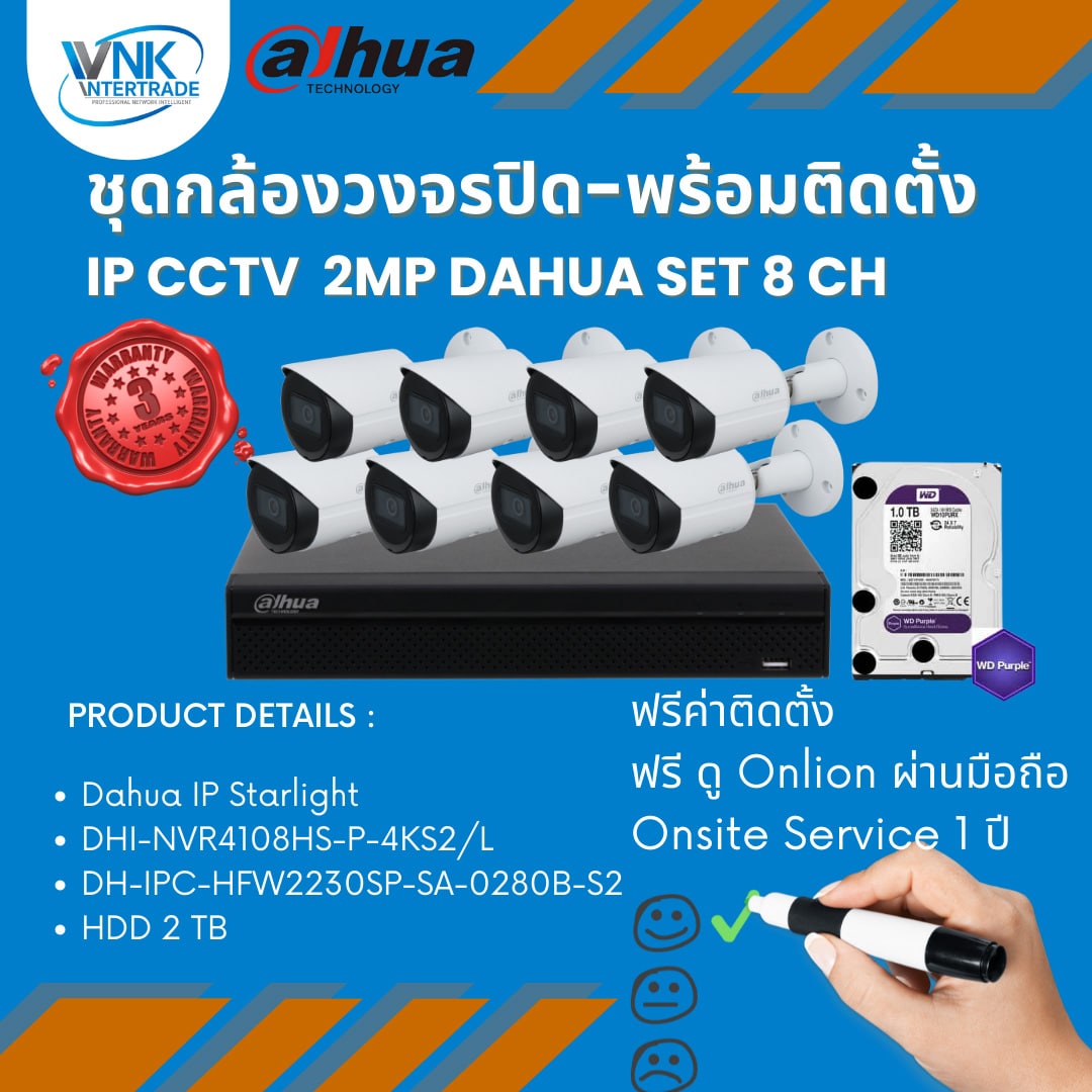 Dahua ชุดกล้องวงจรปิด ระบบ IP พร้อมติดตั้ง 8 กล้อง